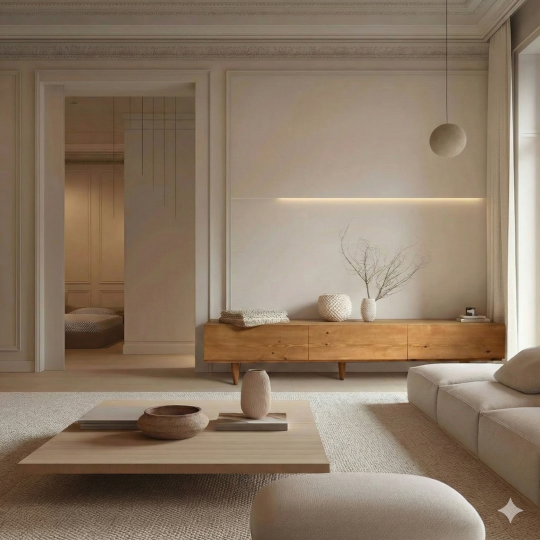 無垢材の魅力は、同じものが二つとない自然の表情。節や木目の個性が際立ち、シンプルながらも豊かな存在感を放ちます。